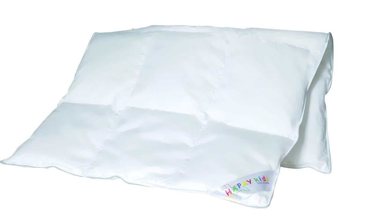 Happy Kids helårs junior dyne Happy Kids helårs baby dyne. Lækker helårs baby dyne i bæreevne 10. Mål 100×140 cm med 140 gram europæiske andedun 90% og småfjer 10%. Våret er Bomulds Cambric. Kan vaskes på 60 grader skånevask med dunvaskemiddel og tørretum
