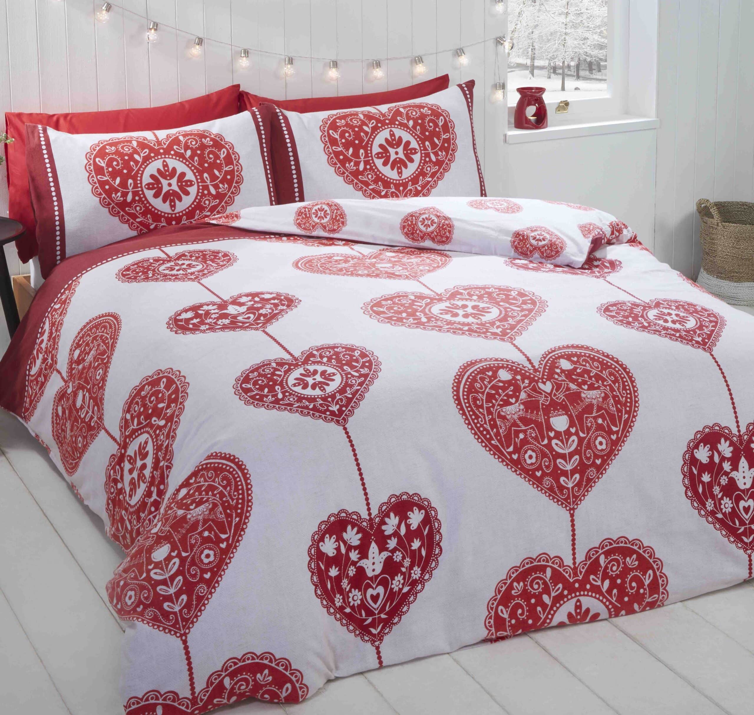 Scandi Hjerte Rødt Sengetøj til dobbeltdyne, 200x200cm